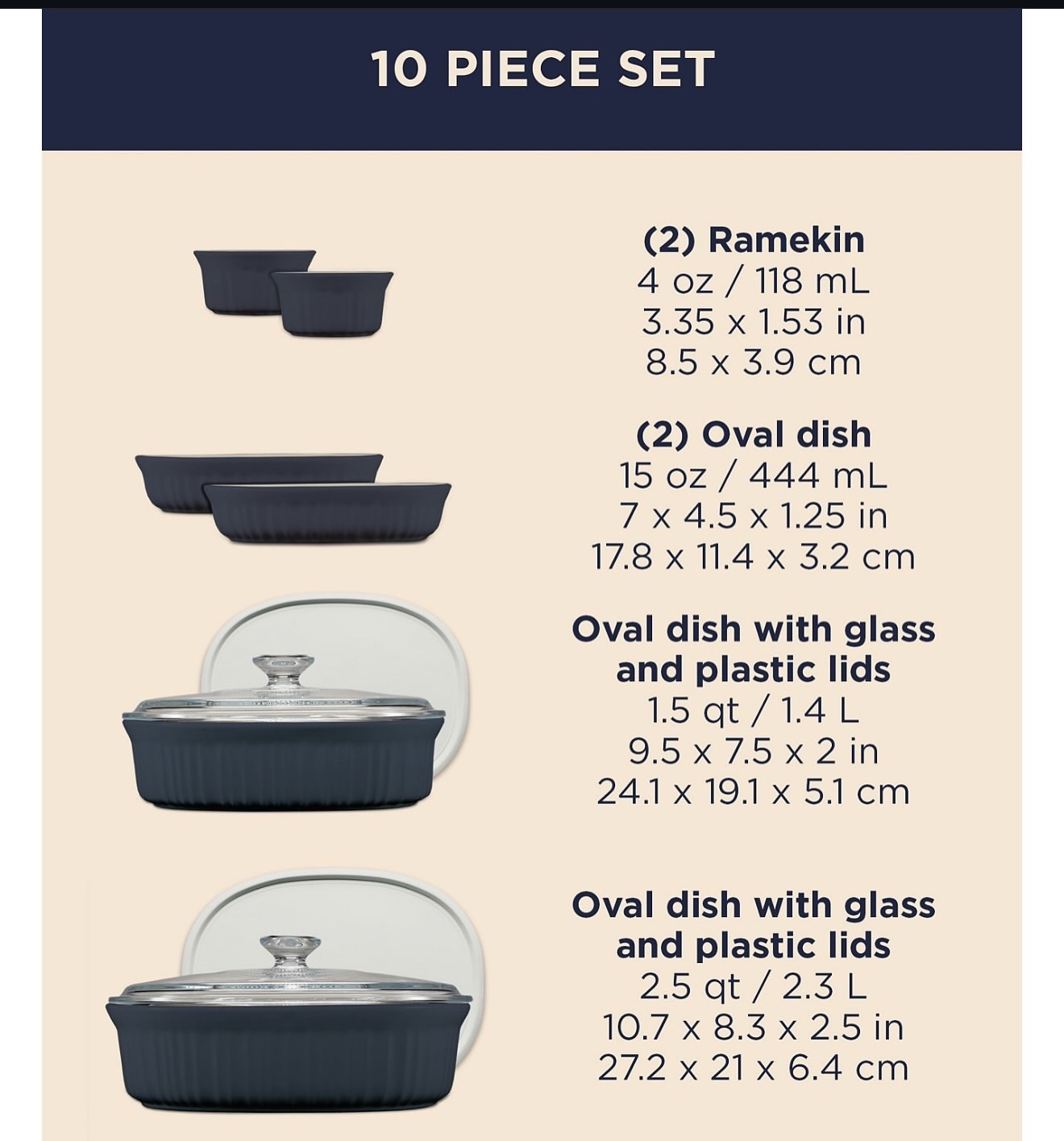 • 2.5-qt. oval baking dish with glass and plastic lids