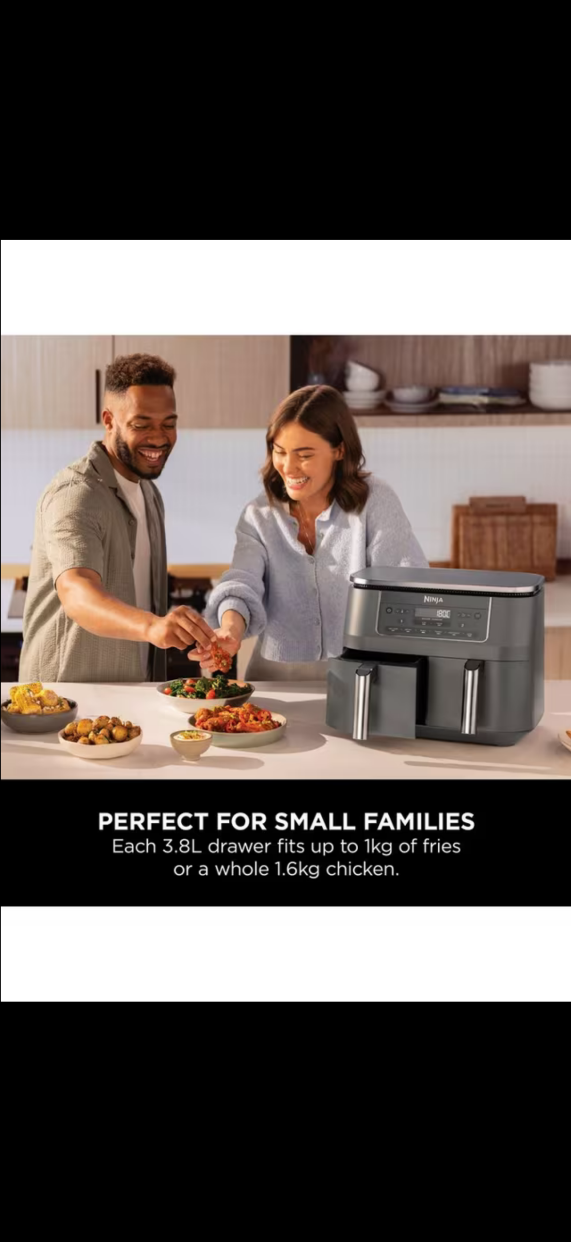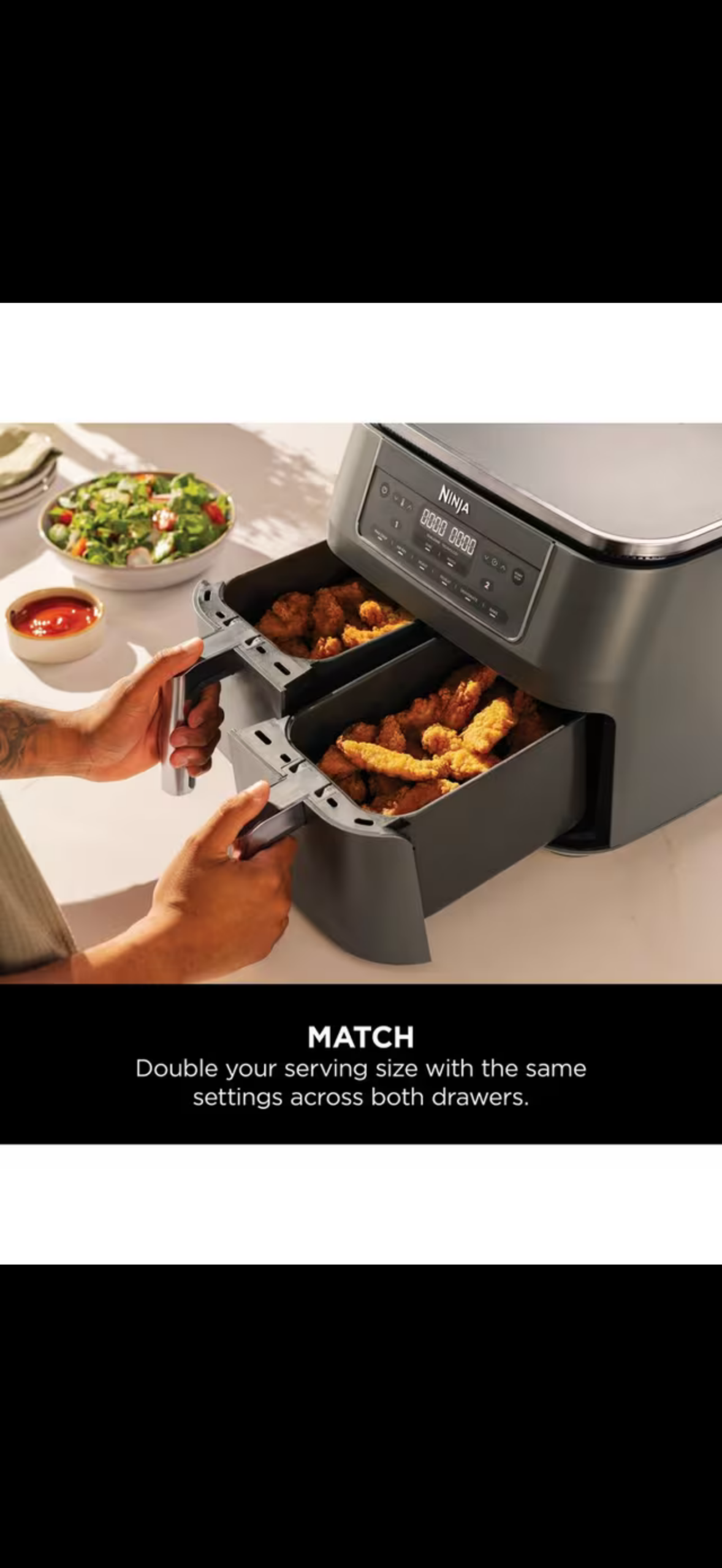 Dual Zone cooking just got a brand new look. Meet the air fryer that cooks 2 foods, 2 ways, and finishes at the same time – now with an updated design and sleek, metallic trim.
