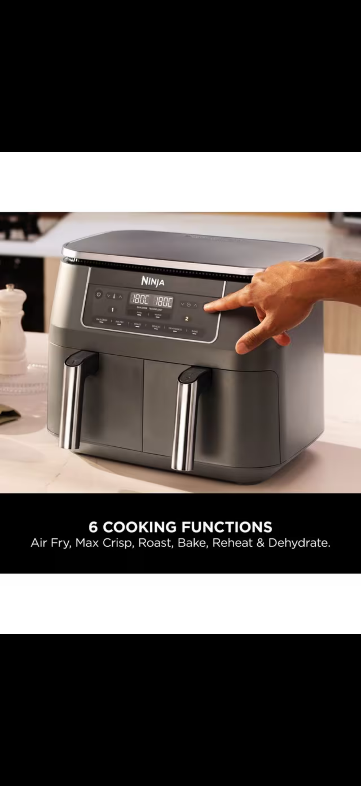 Mix and match cooking functions, times and temperatures across 2 separate cooking drawers to create endless meal options. Get creative with 6 ways to cook: Air Fry, Max Crisp, Roast, Bake, Reheat and Dehydrate.